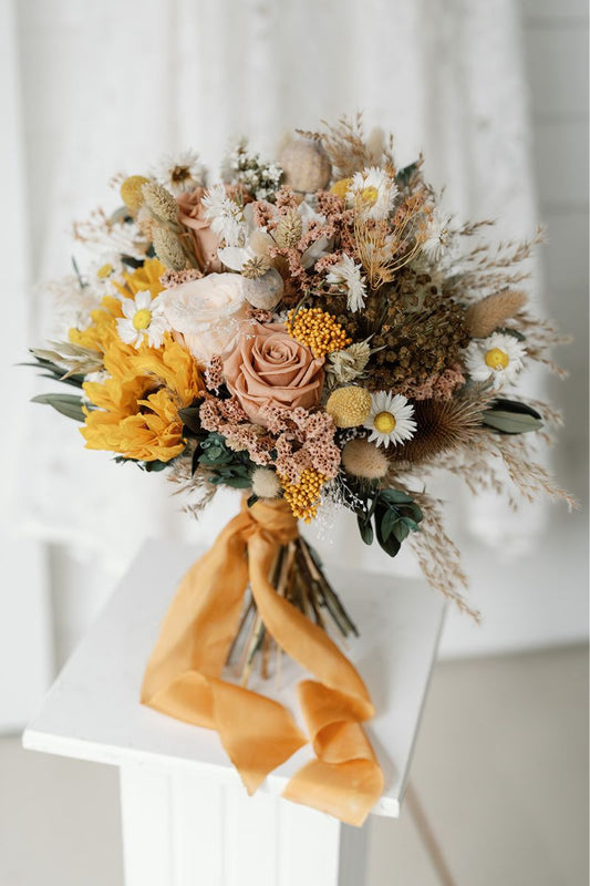 Orla Boho Sunflower Bridal Bouquet | Dried & Preserved Wedding Flowers