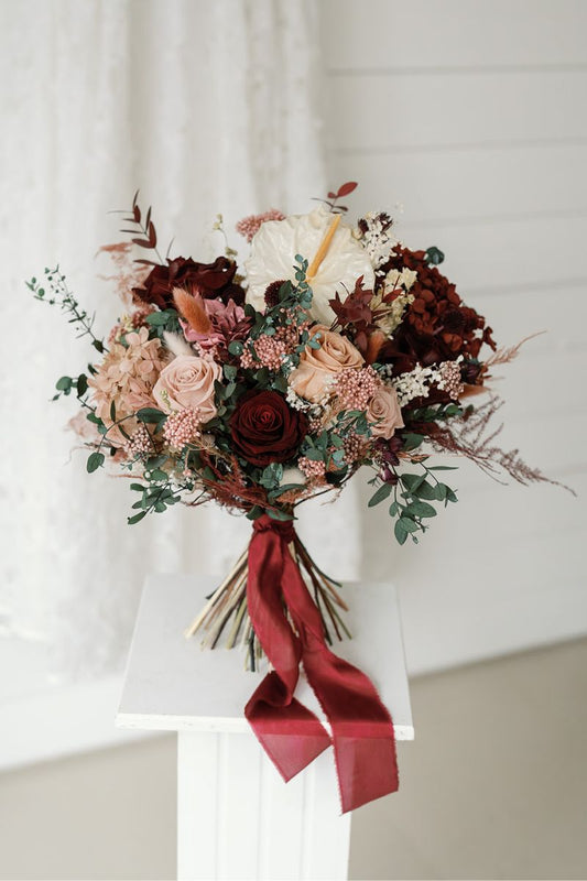 Scarlett Red Wine & Dusky Pink Bridal Bouquet | Bohemian Solstice