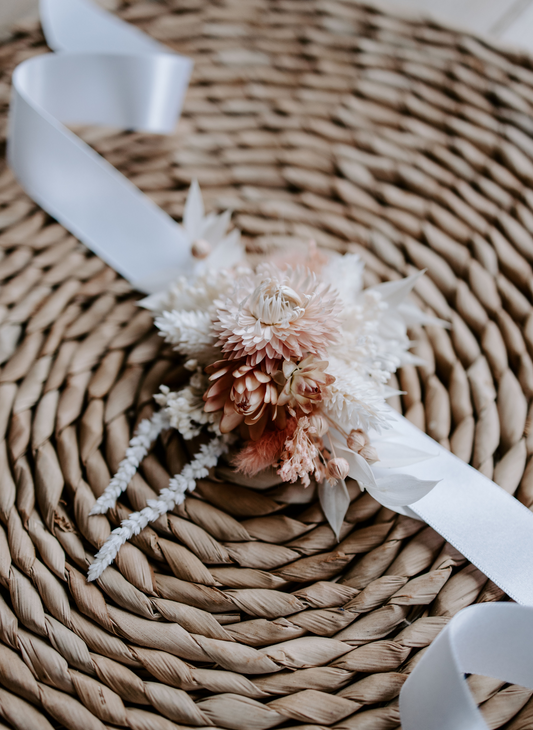 Nala Ivory Boho Dried Flower Wedding Wrist Corsage